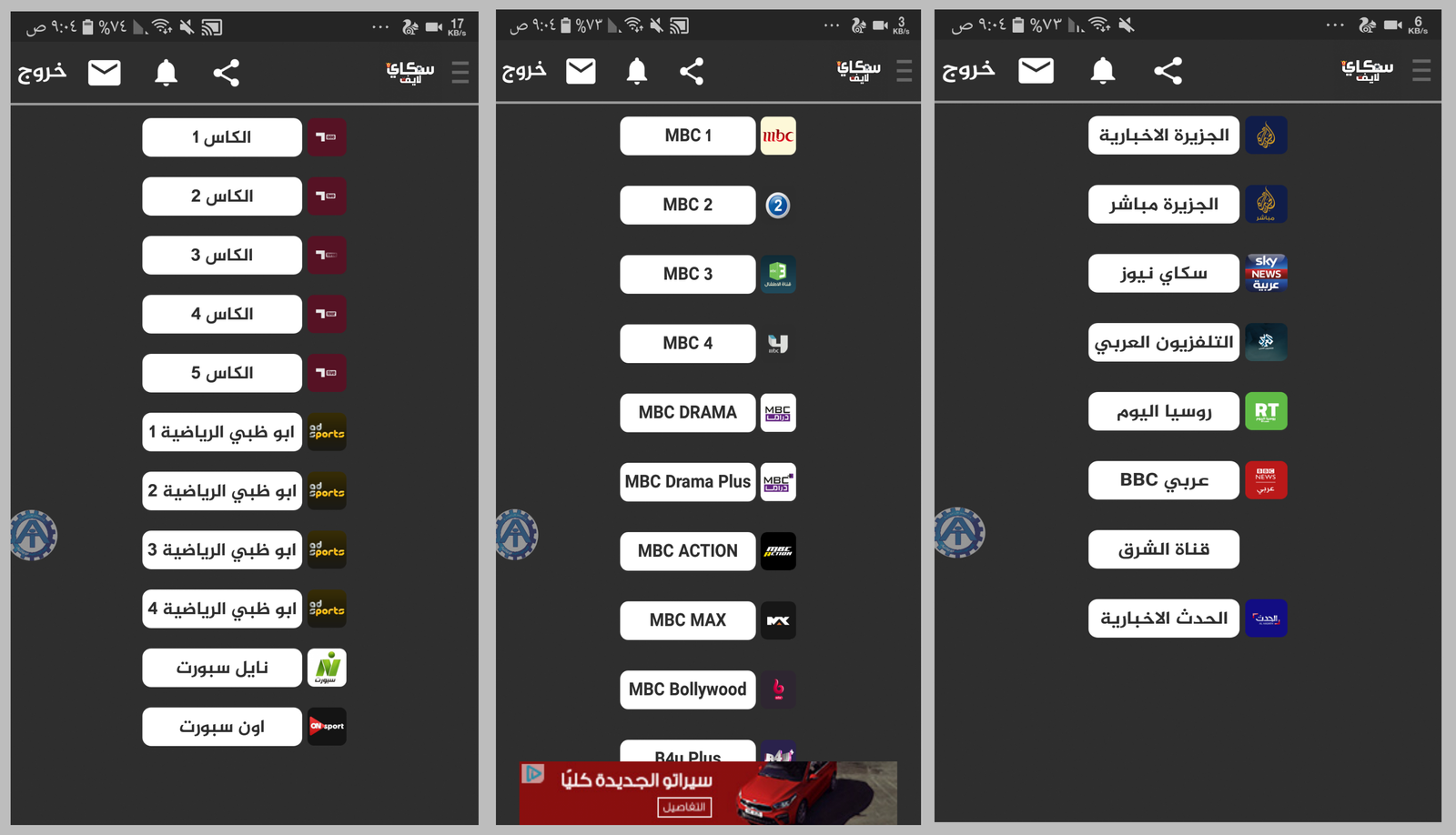 ننتقل إلى قنوات ART التي فيها قنوت الأفلام وقنوات السينما ونتوجة الى باقة القنوات الرياضية التي فيها قنوات الكاس المتعددة وقنوات أبو ظبي الرياضية وقنوات الأردن والبحرين والكويت الرياضية وباقة قنوات MBC التي تشمل كل قنوات الخاصة بها ويظم أيضاً قنوات الأطفال والقنوات الأخبارية والوثائقية أضافة الى القنوات الدول العربية التي سوف يتم أضافتها قريباً ونجد في التطبيق دعم فني عند حدوث مشكلة في التطبيق يمكن مرتسلتهم على الواتساب، أن أعجبك الموضوع فقط نطلب منك خدمة بسيطة هي شاركة مع الأصدقاء على مواقع التواصل الأجتماعي، ودمتم بخير.
