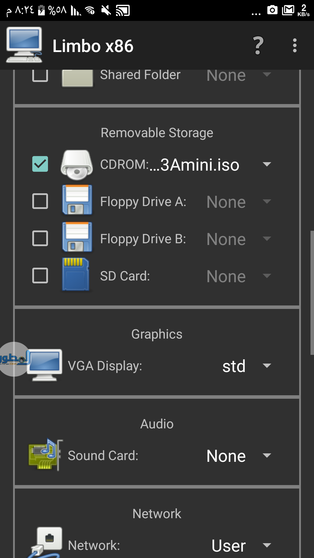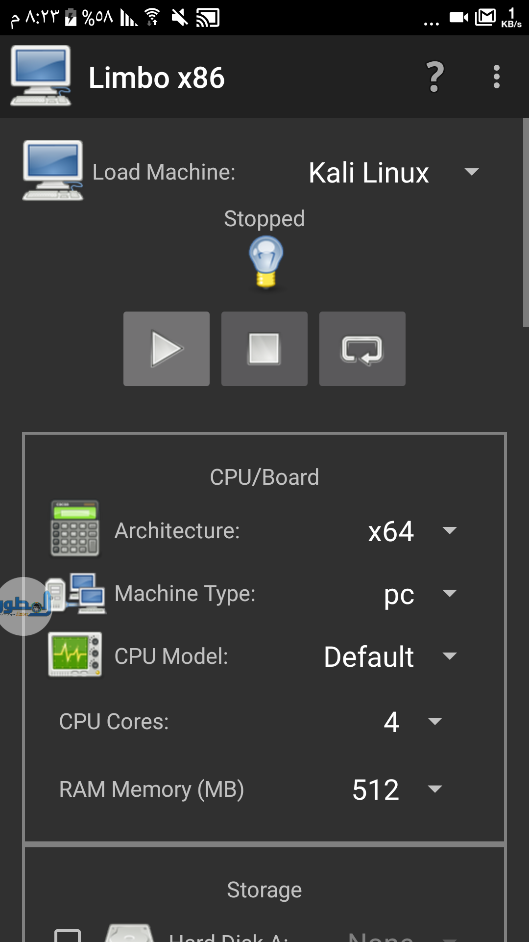 السلام عليكم ورحمة اللة وبركاته، اليوم لدينا طريقة تثبيت نظام “Kali Linux ” على هاتف الأندرويد تحتاج الى التوزيعة الكالي لنكس بصيغة “ios” وتحتاج الى تطبيق” Limbo x86″ الذي يعتبر محاكي لتشغيل أنظمة لنكس وجميع نسخ الويندوز على هاتف الأندرويد،يجب أن تكون الذاكرة المتوفرة في الهاتف الداخلية والخارجية أكثر من “5G” حتى يعمل النظام ،تقوم بتحميل ملف نظام لنكس ، بعد تحميلة تنقلة الى الذاكرة الخارجية وتحمل التطبيق من الروابط أسفل المقال، تثبت التطبيق وتقوم بفتحة في الخانة الأولى تكتب أسم النظام الكالي لنكس وتطبق التعليمات الموجودة في الصورة التالية.