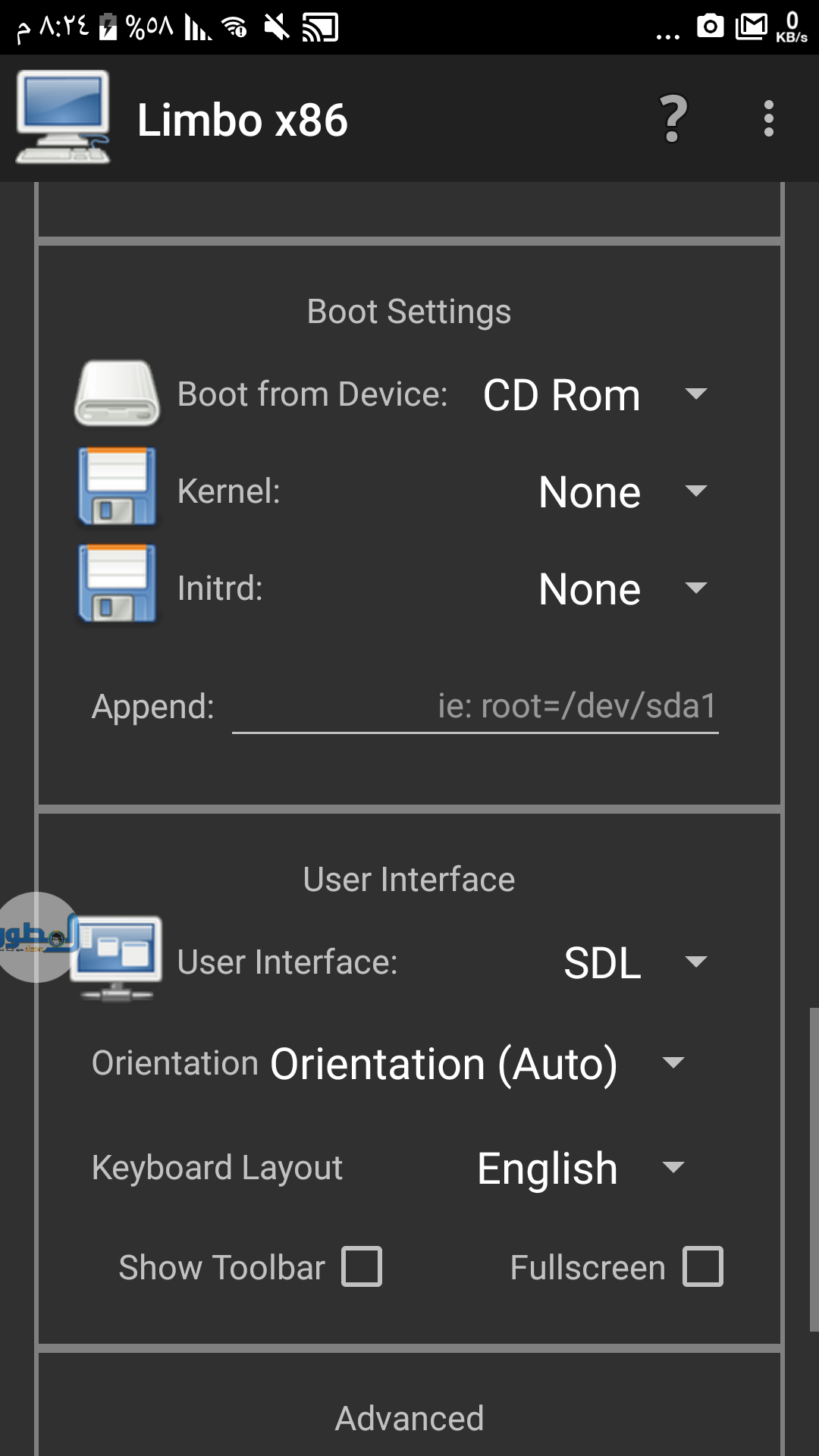 بعد أن طبقت التعليمات الموجودة في الصور أعلاه ،تقوم بالضغط على المثلث لكي يعمل المحاكي،تضغط على زر الرجوع ستظهر لك في الأعلى رمز الماوس أذا كنت تستعملة،أو لوحة مفاتيح الهاتف ،يعتمد التنصيب ومدتة على نوعية الهاتف والذاكرة الداخلية والخارجية ،يحتوي النظام على جميع الأدوات ،المستعملة في نظام لنكس على الحاسوب.
