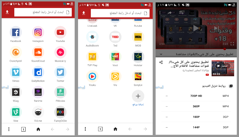 رابط التحميل موجود في نهاية المقال حملة وثبتة على هاتفك الذكي ، يدعم التطبيق الكثير من المواقع منها الفيسبوك وتويتر وأنستكرام وغيرها العشرات ، ويمكنك أيضاً أضافة العديد من المواقع للصفحة الرئسية ، عندما تريد تحميل مقطع من اليوتيوب تضغط على مشاركة وتنقر على أيقونة التنزيل لتحميل الفيديو بسرعة خيالية ، وبجودة الفيديو الأصلي ،تجد فية الكثير من المواقع دون مغادرة التطبيق فهو يحتوي على مواقع الألعاب والمسيقى والأخبار وكذلك الأحداث المباشرة .