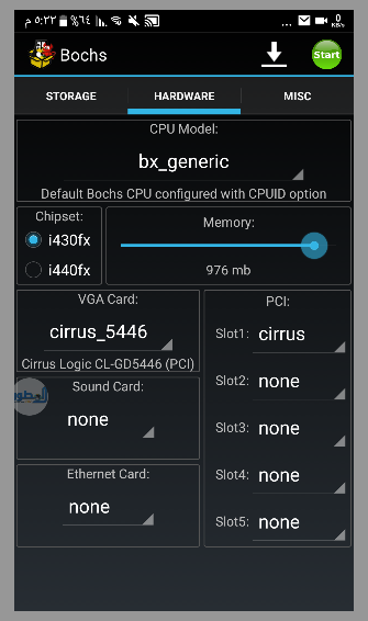 وبعد ذلك نذهب الى الخيار الثاني HARDWARE ونختار حجم الرام ويجب أن تتوفر لديك مساحة تبلغ أكثر من 2g في RAM حتي يعمل بصورة جيدة وتطبق كما موجود في الصورة  .
